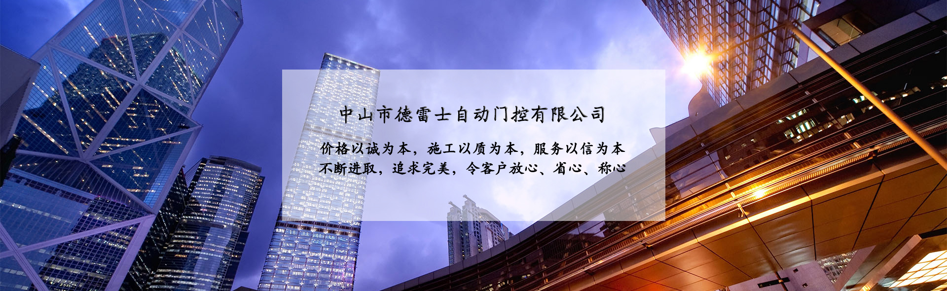 中山市德雷士自動(dòng)門(mén)控有限公司代理中山松下自動(dòng)門(mén)、中山松下感應(yīng)門(mén)、及其旗下品牌松下(Panasonic)自動(dòng)門(mén)、旋轉(zhuǎn)門(mén)、型材門(mén)、松下門(mén)禁系統(tǒng)、地彈簧、閉門(mén)器等系列產(chǎn)品。 松下Panasonic一直致力于憑借不斷創(chuàng)新的技術(shù)營(yíng)造為各個(gè)區(qū)域的用戶(hù)做出最佳解決方案,在自身領(lǐng)域處于領(lǐng)先地位;松下自動(dòng)門(mén)控系統(tǒng)廣泛應(yīng)用于寫(xiě)字樓、機(jī)關(guān)單位、大型企業(yè)、學(xué)校、醫(yī)院、智能小區(qū)等領(lǐng)域。在用戶(hù)心中有良好的口碑及信譽(yù)度。 松下(Panasonic)自動(dòng)門(mén)控系統(tǒng)包含:自動(dòng)感應(yīng)門(mén)、旋轉(zhuǎn)門(mén)、90度平開(kāi)門(mén)、圓弧型門(mén)、重疊門(mén)、緊急逃生門(mén)、醫(yī)用門(mén)、氣密門(mén)、鋁合金型材門(mén)、松下門(mén)禁系統(tǒng)、家庭智能鎖、地彈簧、閉門(mén)器等系列產(chǎn)品。 德雷士自動(dòng)門(mén)控有限公司從事智能門(mén)控十余載,精英匯聚;公司具有完善的管理體系,對(duì)每位客戶(hù)都進(jìn)行檔案管理,跟蹤服務(wù),定期回訪(fǎng),終生維修。提供急修12小時(shí)解決,一般維修48小時(shí)解決的服務(wù),完全能解決您的后顧之憂(yōu)。 公司的質(zhì)量方針 科學(xué)管理確保的工程質(zhì)量 真誠(chéng)服務(wù)贏得客戶(hù)信譽(yù) 持續(xù)創(chuàng)新打造企業(yè) 公司的服務(wù)宗旨 價(jià)格以誠(chéng)為本,施工以質(zhì)為本,服務(wù)以信為本。 實(shí)實(shí)在在做人,老老實(shí)實(shí)做事,以我們的辛苦換來(lái)客戶(hù)滿(mǎn)意的微笑,這就是我們的追求! 公司的目標(biāo) ...